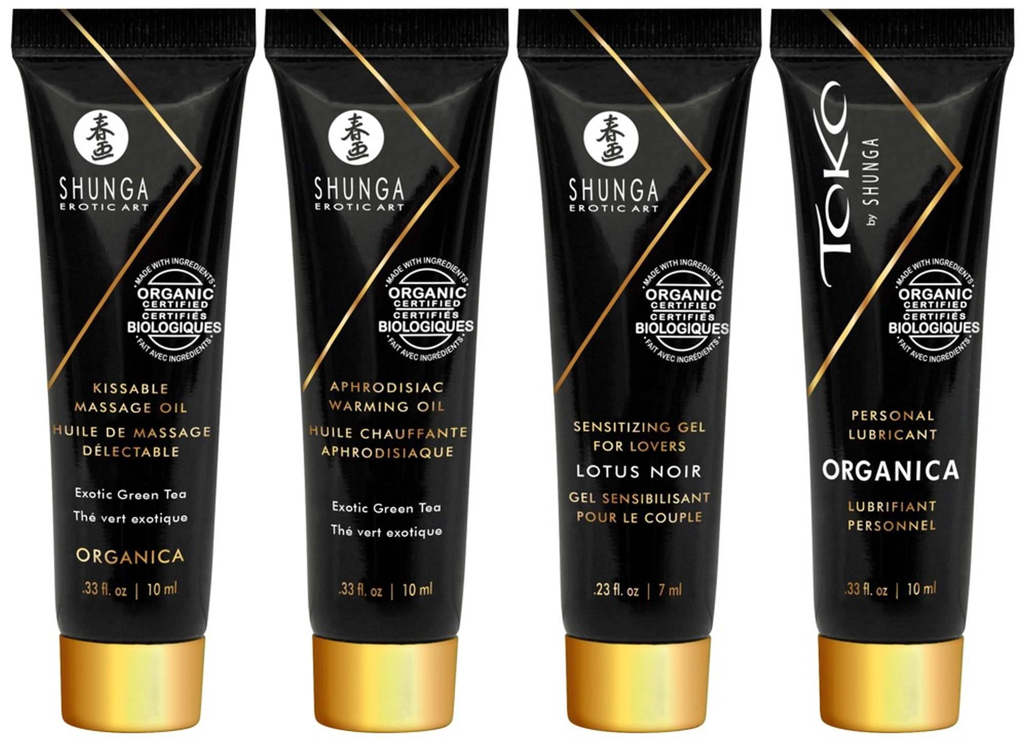 Zestaw Geisha’s Secret Kit Organica zawiera 5 miniatur luksusowych produktów marki Shunga do zmysłowych masaży partnerskich i namiętnych gier miłosnych. Każdy produkt do masażu ma urzekająco egzotyczny aromat zielonej herbaty, który budzi wszystkie zmysły i sprawia, że chce się go dotykać i całować. Do tego doskonały żel toko i finezyjny żel stymulujący dla ekscytujących doznań. Oba zawierają czystą roślinną glicerynę dla większego nawilżenia i elastyczności.