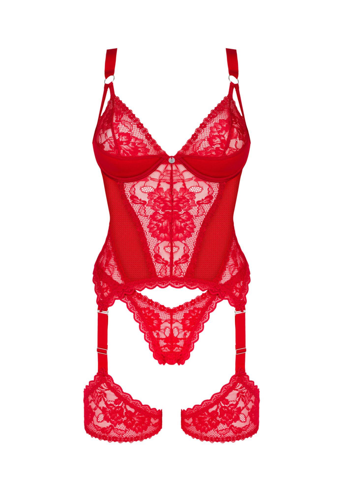 Koronkowy gorset ze stringami od Obsessive XL/2XL