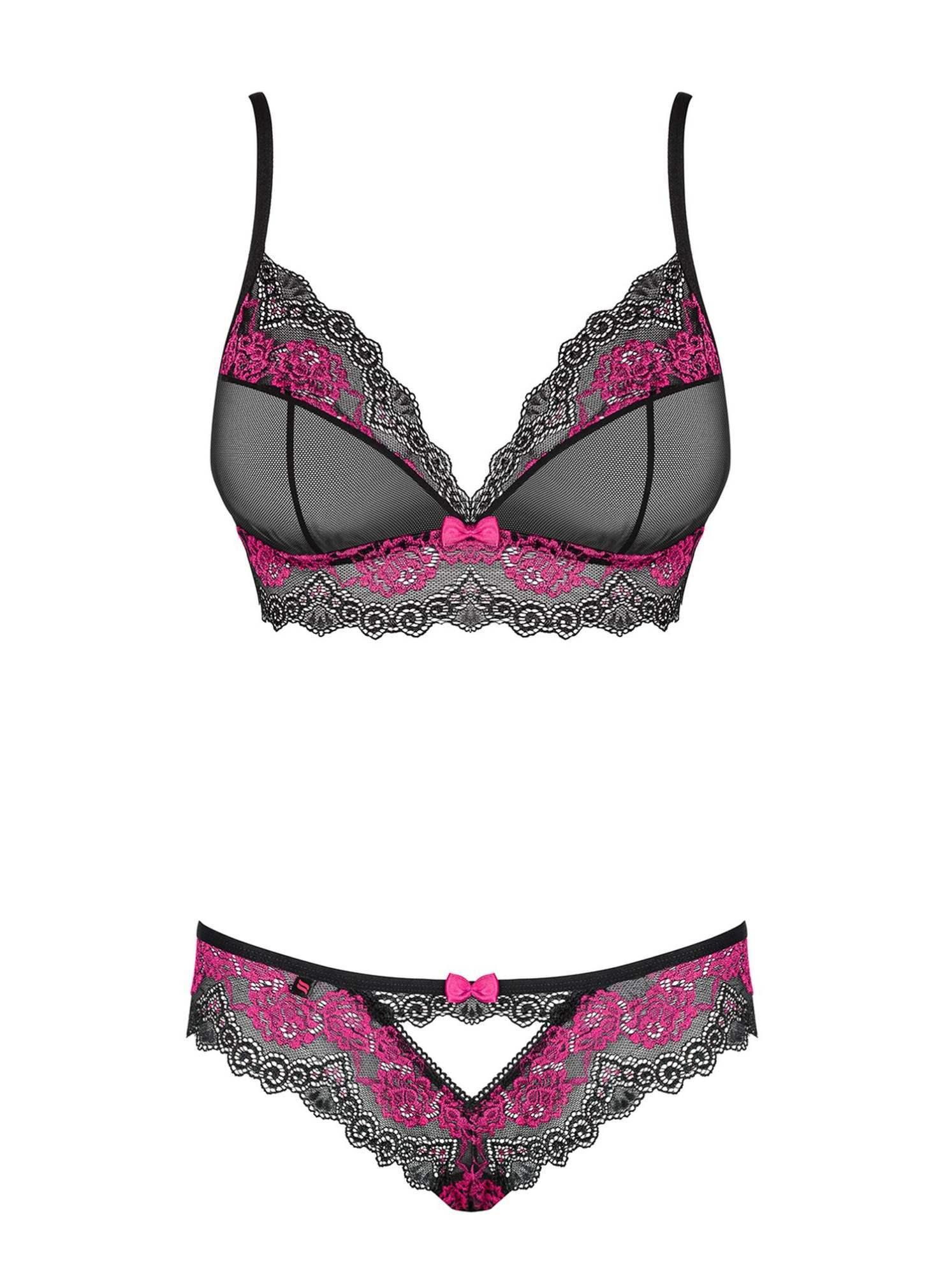 Czarno-różowy komplet bielizny od Obsessive L/XL