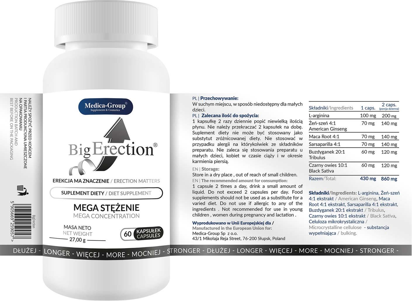 Big Erection to suplement diety stworzony dla mężczyzn, którzy pragną pełnej kontroli nad swoją erekcją i chcą czerpać maksimum przyjemności ze swojego życia intymnego. Dzięki starannie dobranym składnikom naturalnym wspiera ukrwienie narządów płciowych i poprawia sprawność seksualną.