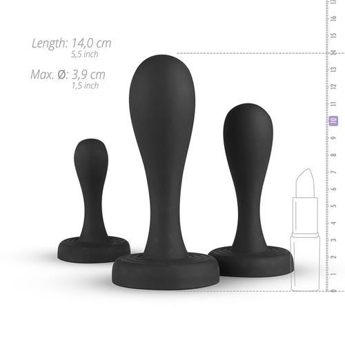 Czy chcesz zacząć od seksu analnego? W takim razie ten zestaw wtyczek jest odpowiedni dla Ciebie! Zestaw składa się z trzech wtyczek w różnych rozmiarach od małego do dużego. Wykonane są z miękkiego, elastycznego silikonu i są wygodne. Używaj wodnych smarów analnych i trenuj.