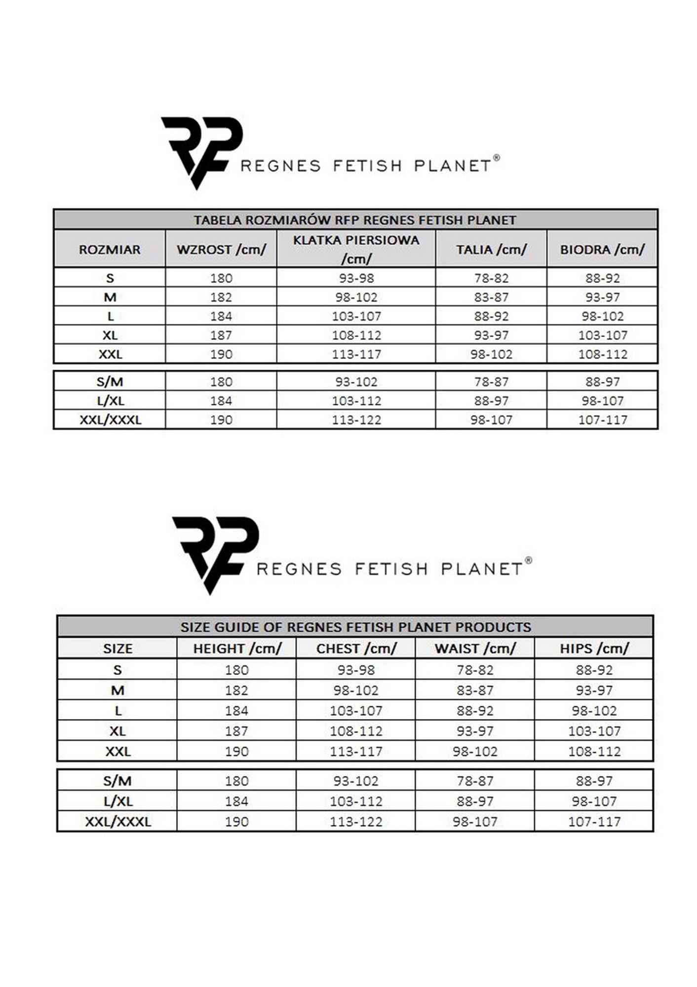 RFP Regnes Fetish Planet to marka, która łączy pasję, kreatywność i oryginalność, oferując produkty dla osób otwartych na nowe doznania i szukających niezapomnianych chwil. Skierowana do mężczyzn, którzy cenią modę, seksowną bieliznę, odzież clubwear oraz mają wyraźnie określone fetyszyzmowe preferencje. Produkty z logo RFP Regnes Fetish Planet wyróżniają się nie tylko pięknym wyglądem, ale również wygodą i trwałością, podnosząc temperaturę zabaw i inspirując do nowych eksperymentów.