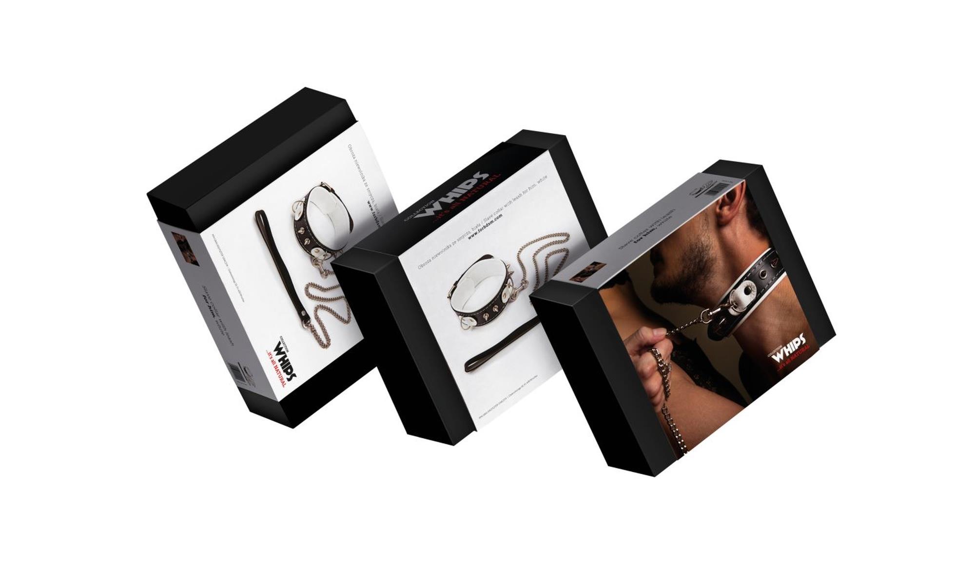 Wiązania – WHIPS Obroża niewolnika ze smyczą, biała