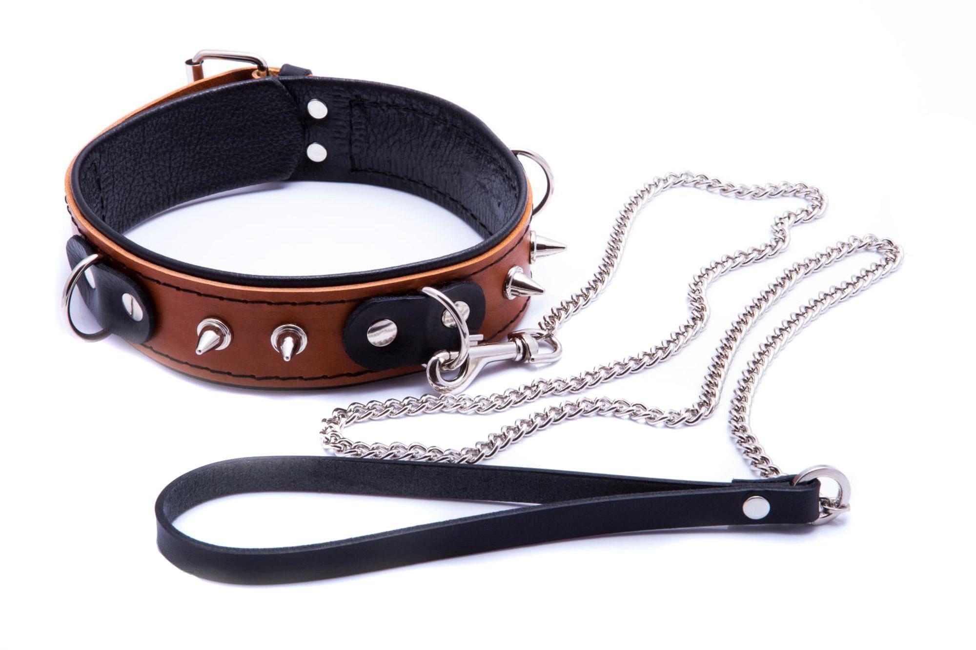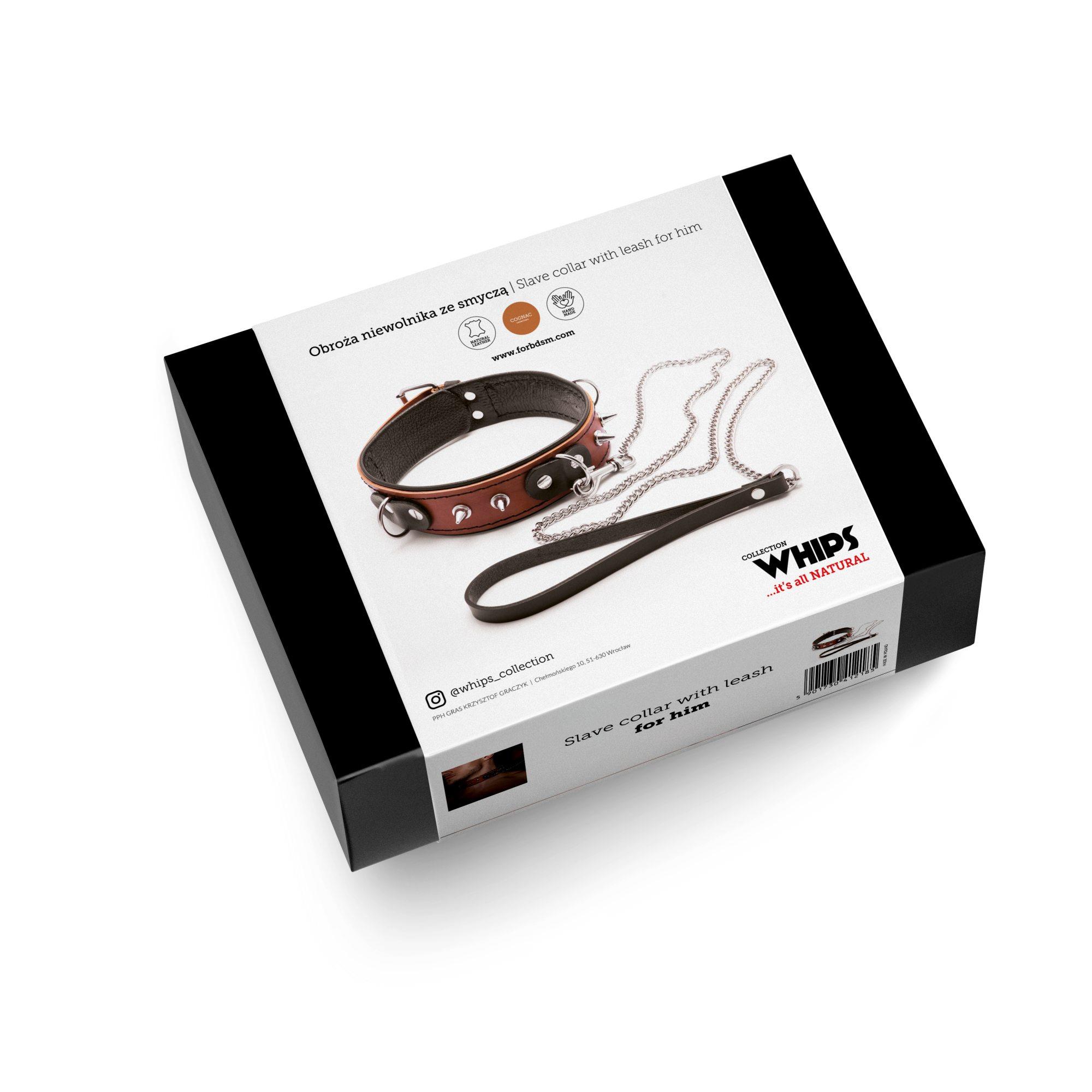 Wiązania-WHIPS obroża niewolnika ze smyczą, koniakowa
