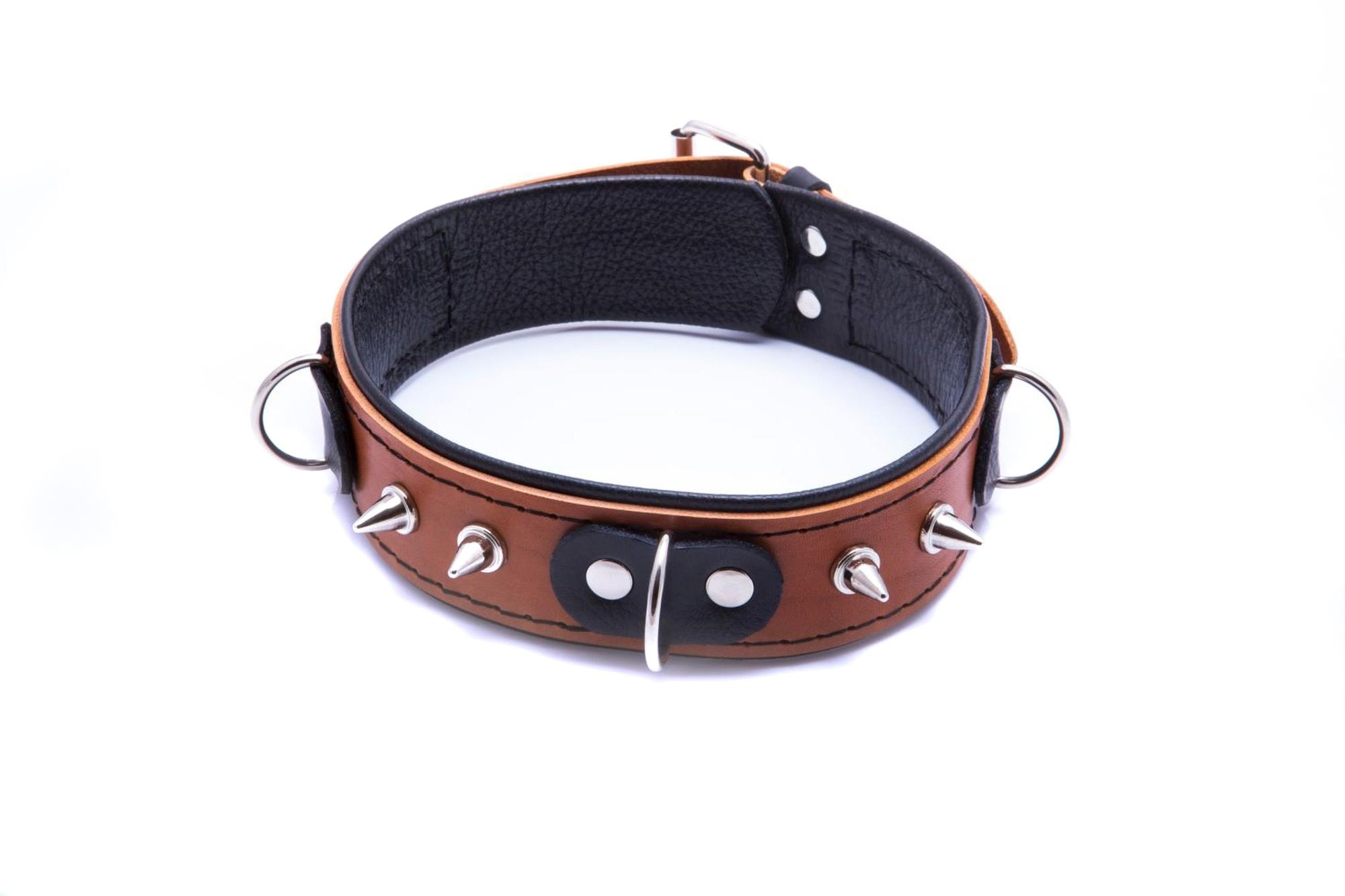 Zestaw: obroża na szyję, z ćwiekami, 3 półkółkami oraz smyczą